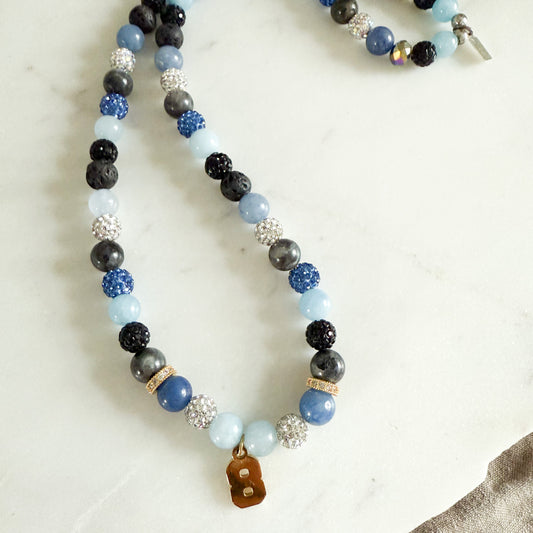 Rugby Custom Gold Number Semi-Precious Stone Necklace