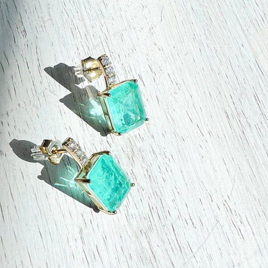 Aspen Rectangle Turquoise Amazonite Gold 925 Stud Earrings