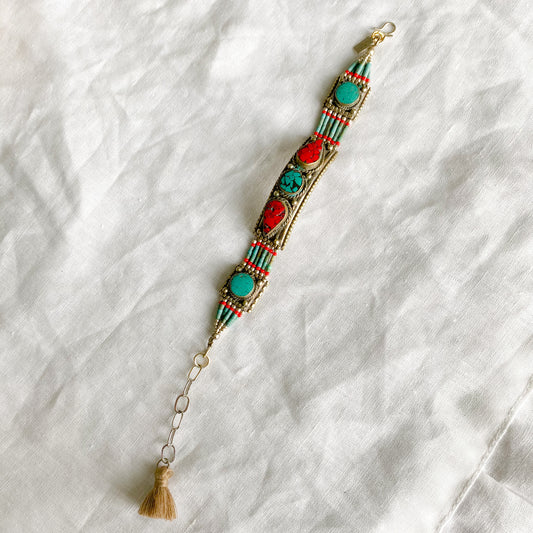 Vintage Tibetan Coral Turquoise Bracelet