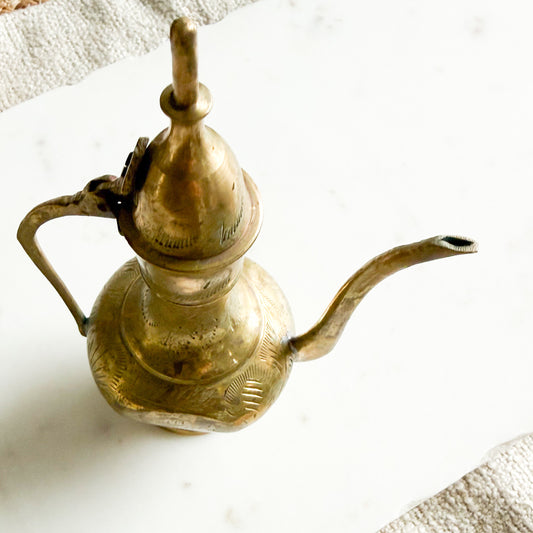 Fern Vintage Etched Brass Teapot with Handle and Lid