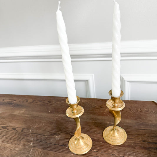 Mid Century Vintage Twist Brass Patina Candle Holders 1970’s