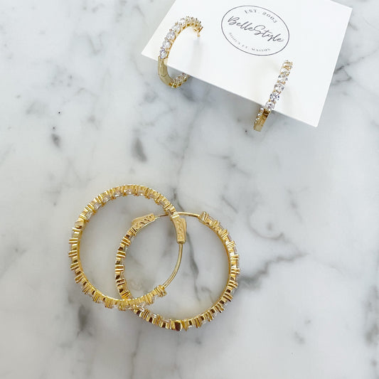 Pave Crystal ChainLink Hoop 925 Post Earrings