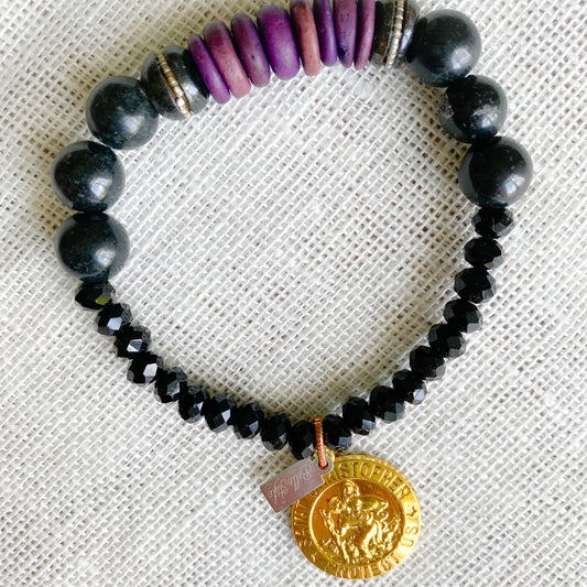 St. Christopher Purple Rosewood Black Jade Bracelet