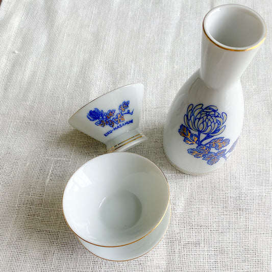 Hand Painted Kiku Masamune Japan Vintage Sustainable Saki Set