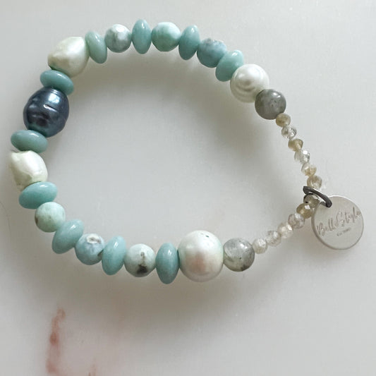 Larimar Black Freshwater Pearl Labradorite Bracelet