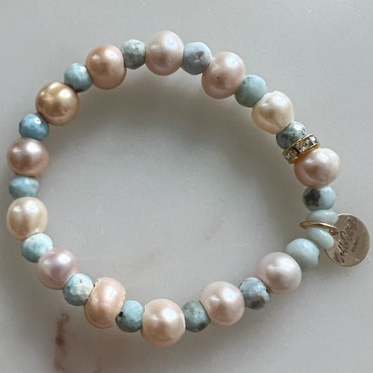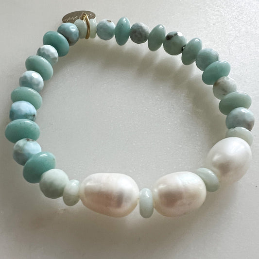 Larimar Turquoise Rosewood Sustainable Freshwater Pearl Bracelet