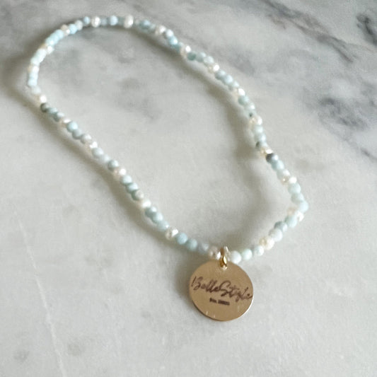 Micro Larimar Freshwater Pearl Logo Bracelet