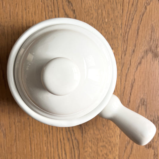 BelleStyle Vintage Small White Ceramic Croc Pot with Lid
