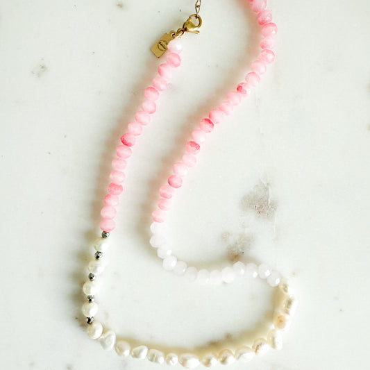 Hallie Freshwater Pearl Rose Quartz Necklace