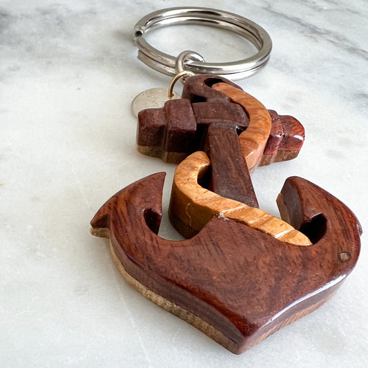 Bali Anchor Wood Keychain