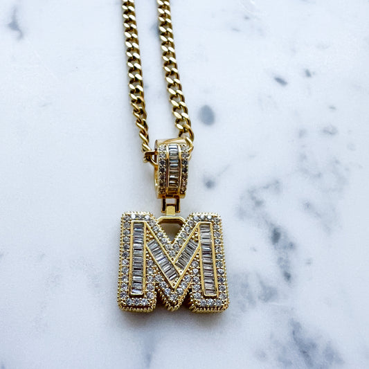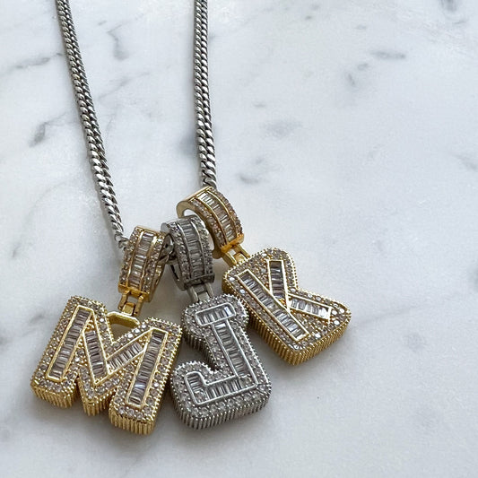 Drip King Stainless Steel Crystal Letter Necklace