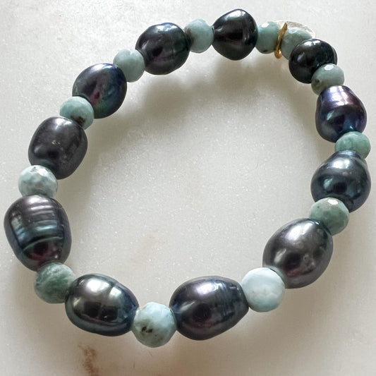 Larimar Black Freshwater Pearl Bracelet