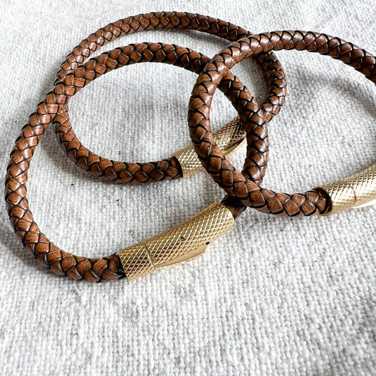Bourbon Leather Gold Men’s Bracelet - 3 Sizes