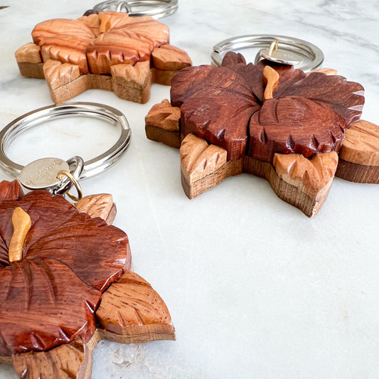 Bali Hibiscus Wood Keychain