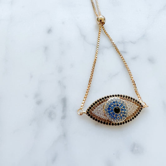 Sky Blue Cubic Zirconia Crystal Gold Bracelet