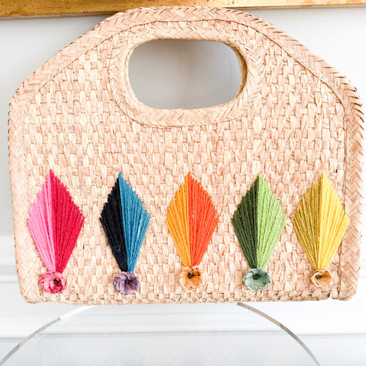 Maria Vintage 1970’s Straw Yarn Flower Handle Bag