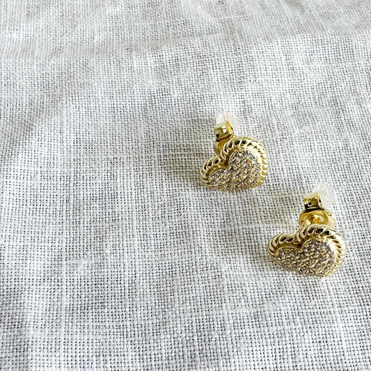 Cable Heart Pave Crystal 925 Post Earrings