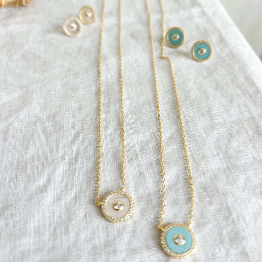 One World Mother of Pearl Pave Crystal 925 Necklace
