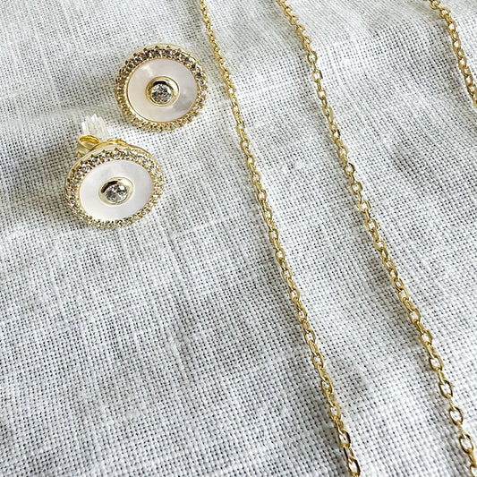 One World Mother of Pearl Pave Crystal 925 Earrings