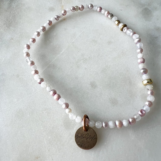 Oaks Freshwater Pearl Crystal Quartz 14KGF Bracelet