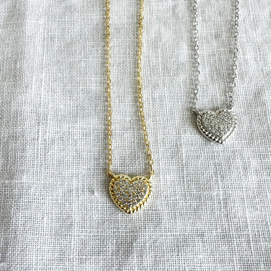 Cable Heart Pave Crystal 925 Necklace
