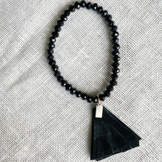 Black Crystal Leather Tassel Bracelet