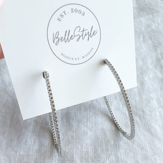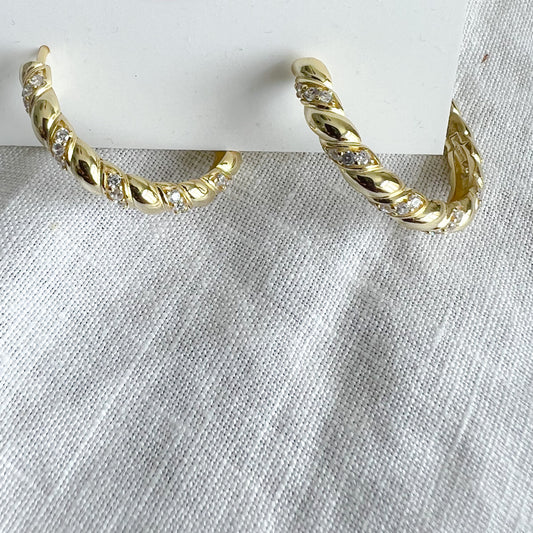 Hepburn Gold Twist Design Pave Crystal Medium Hoop 925 Earrings