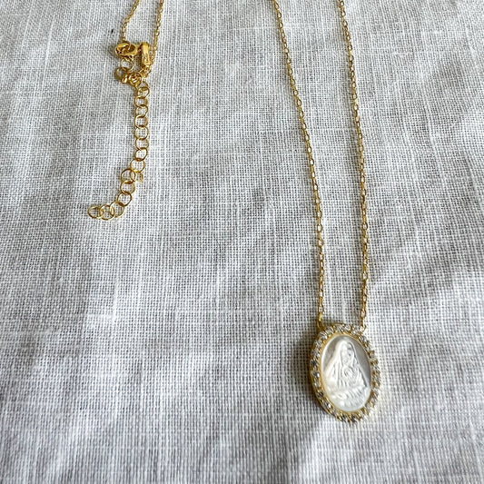 Mini Mother of Pearl Heart Crystal 925 Necklace