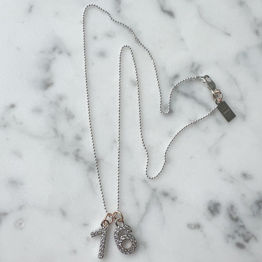 Mini Number Pave Charm Sterling Silver Ball Chain 925 Necklace
