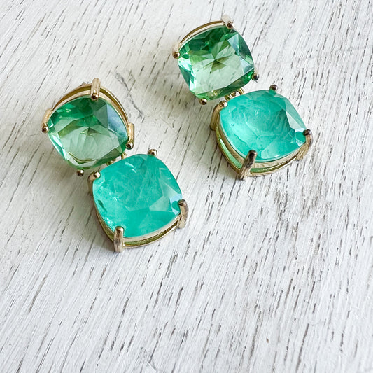 Pine Crystal Amazonite Gold 925 Statement Earrings