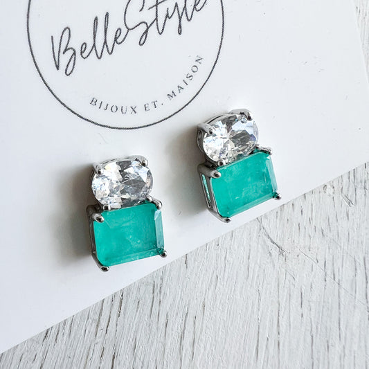 Alpine Clear Turquoise Crystal 925 Stud Earrings
