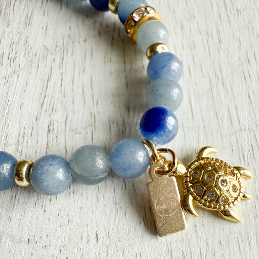 Drippy Blue Chalcedony Turtle Semi Precious 14KTGF Bracelet