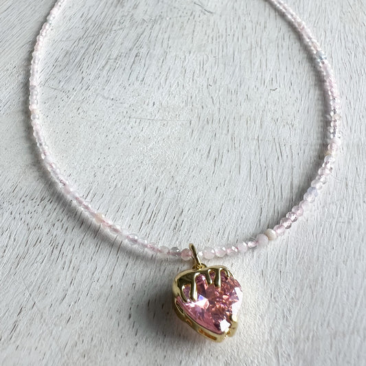 Drippy Strawberry Gold Charm Semi- Precious Stone Necklace
