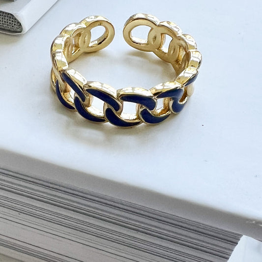 Milano Enamel Link 925 Gold Ring