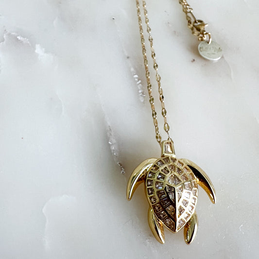 Turtle Gold Crystal Inlay Charm Necklace