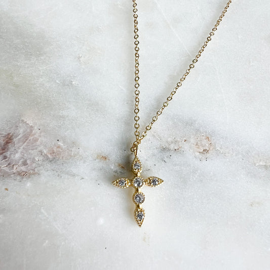 Classic Gold Sterling Silver 925 Crystal Cross Necklace