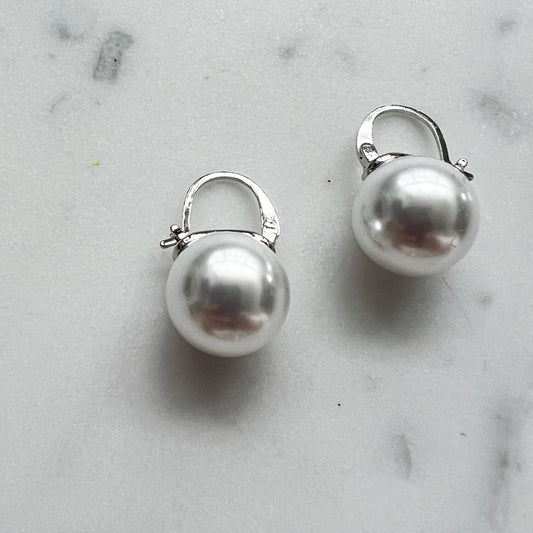 Everyday Faux Large Pearl 925 Earrings