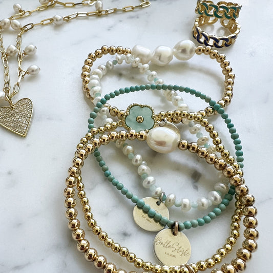 Trevie Freshwater Pearl Gold Bead Bracelet