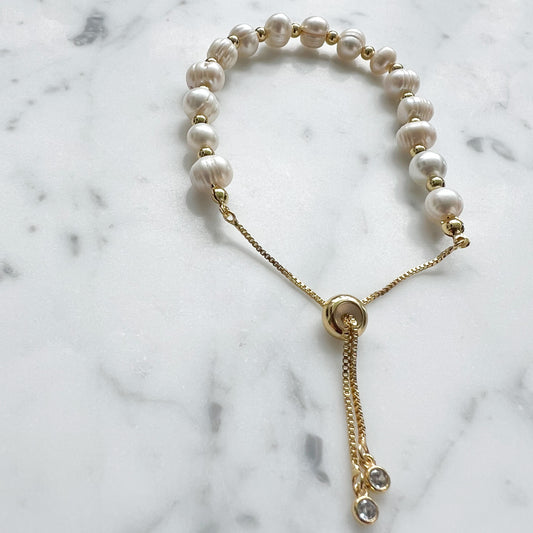 Freshwater Cultured Pearl Adjustable Gold Bracelet