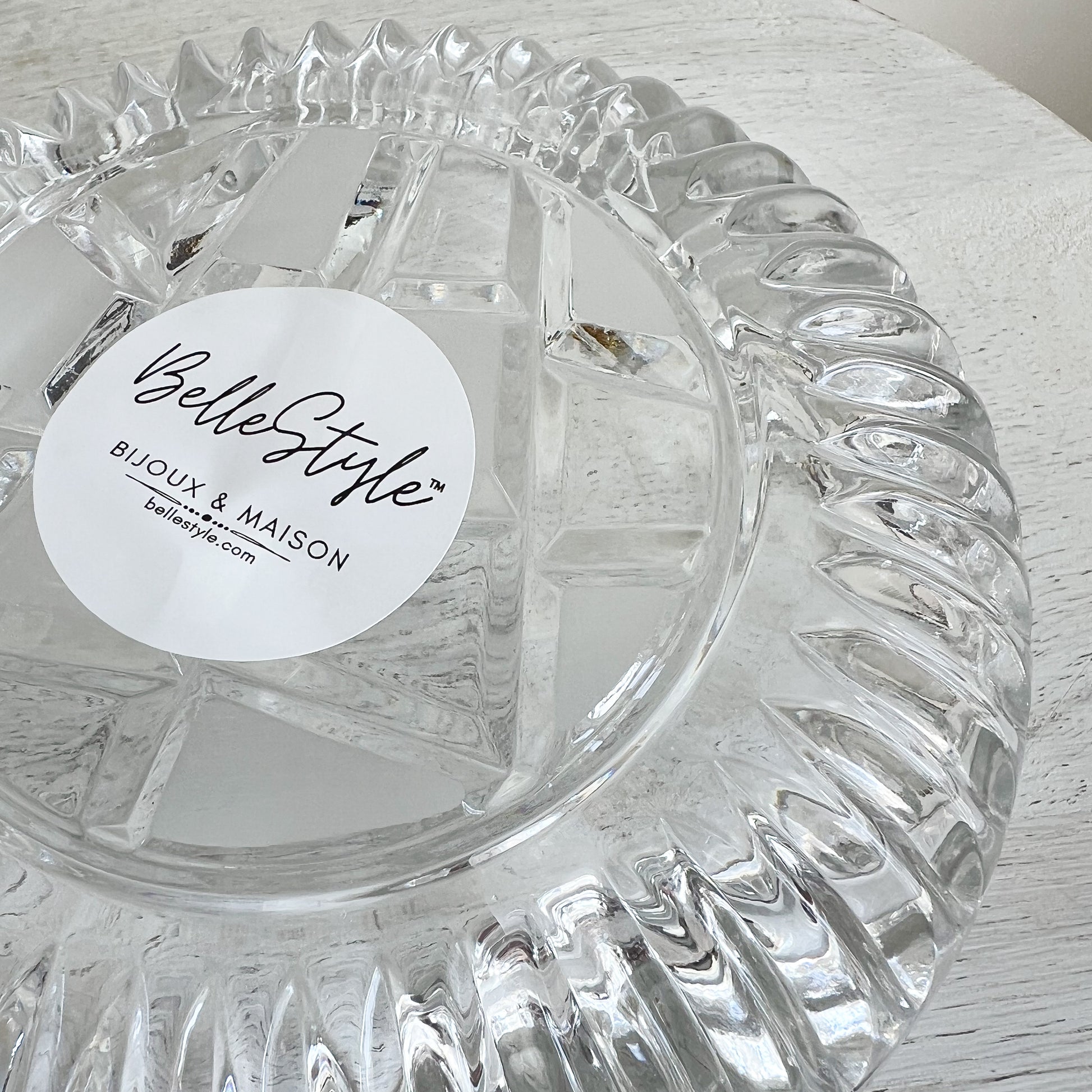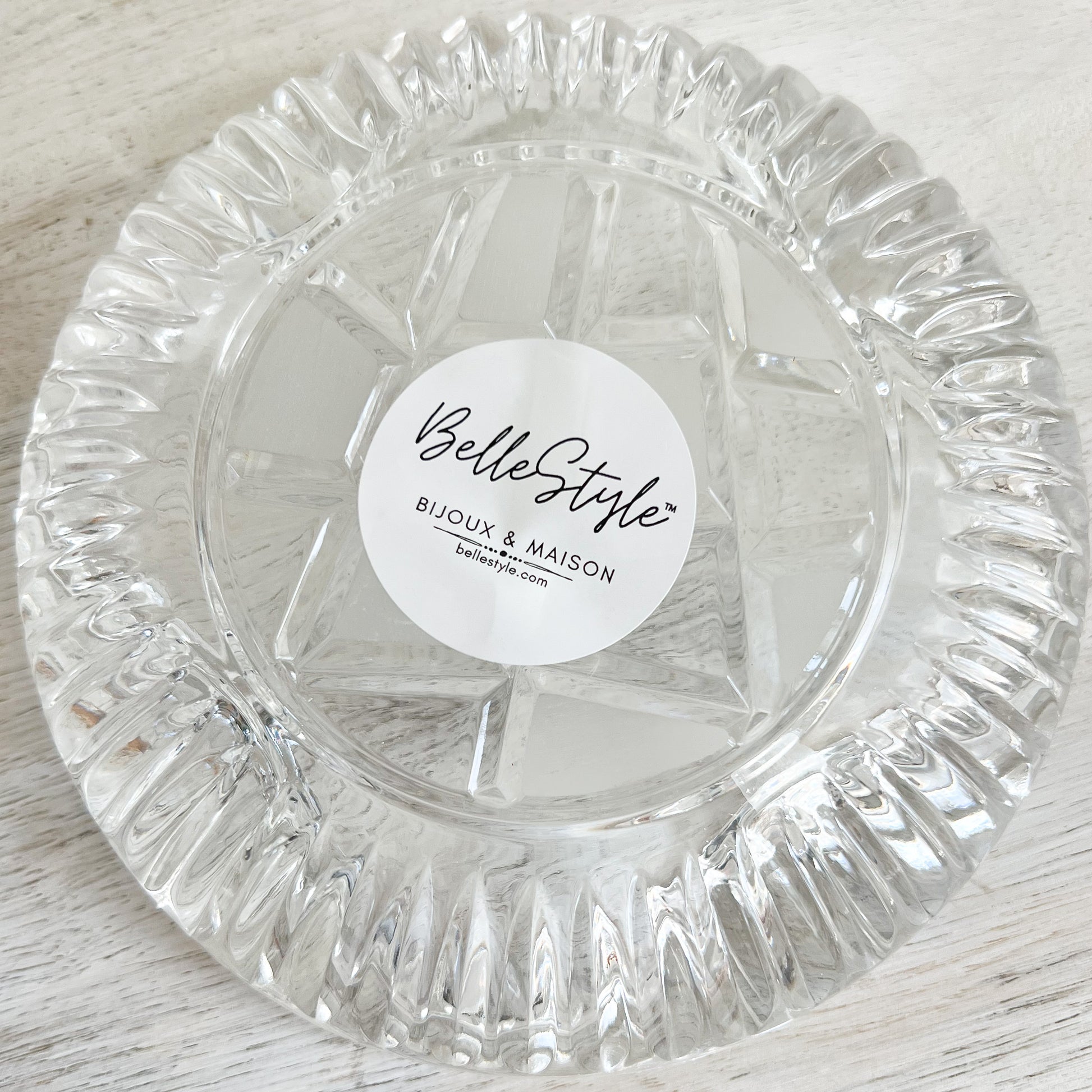 Transform your home decor with this quirky Jigsaw Vintage Ashtray Crystal Jewelry Bowl. Its thick crystal design and unique matte and polished puzzle detail add a touch of sophistication. Use it as a heavy-duty jewelry holder or a stylish candleholder. (Not recommended for smoking.)
