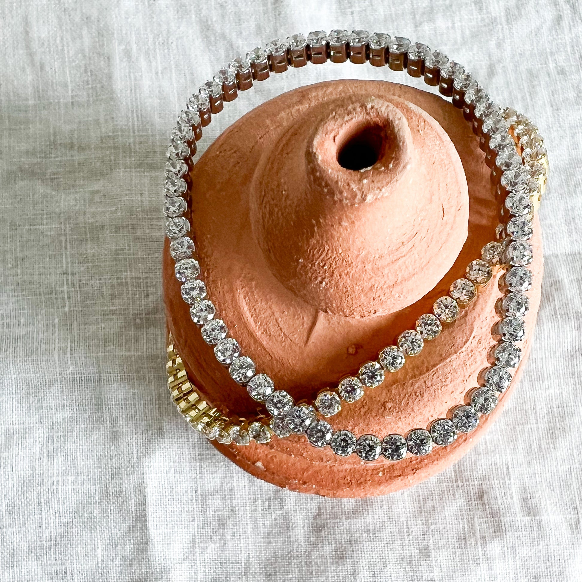 - Store your jewelry in the box or linen travel pouch provided to you.