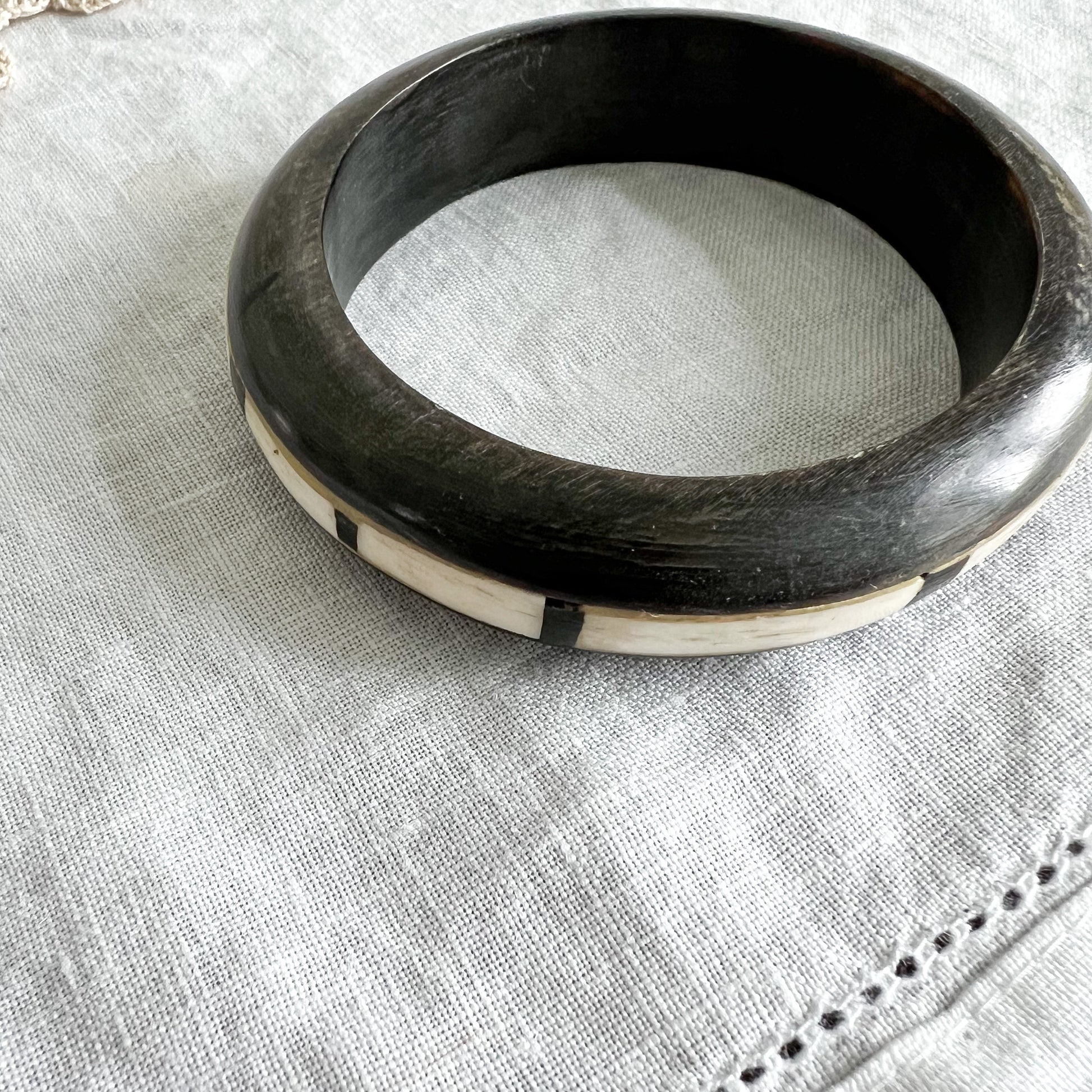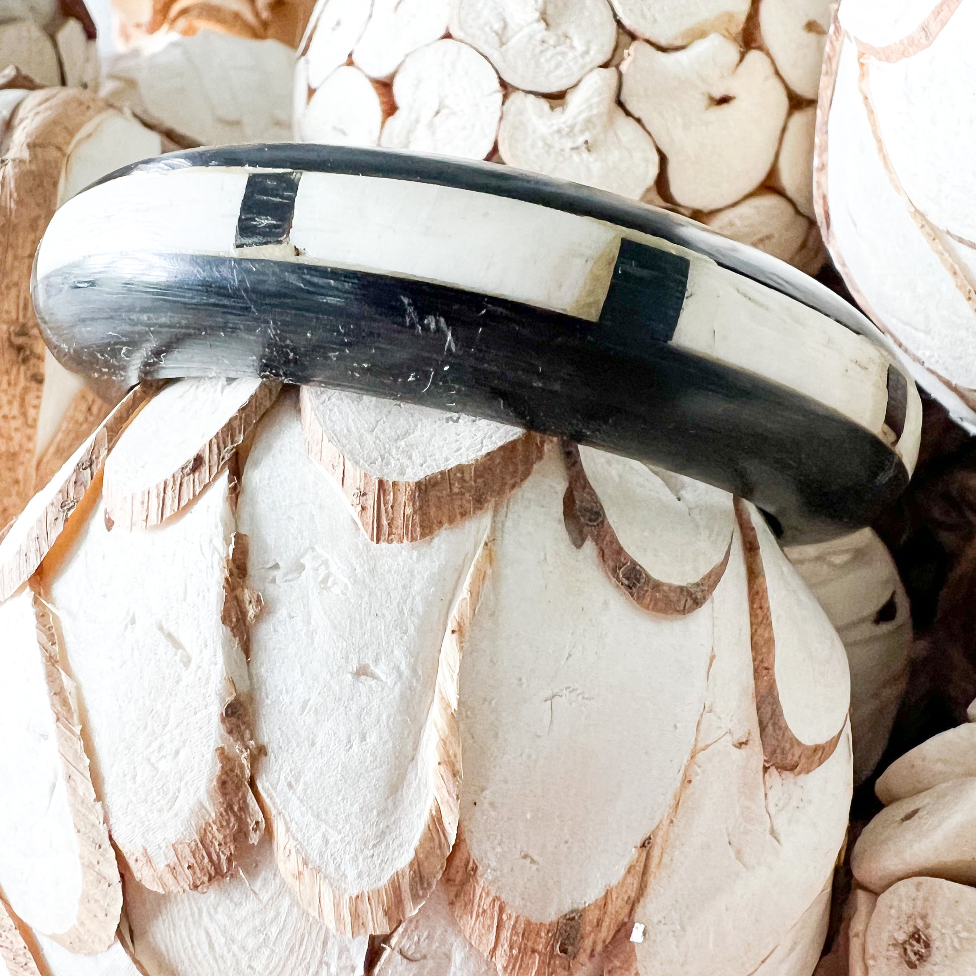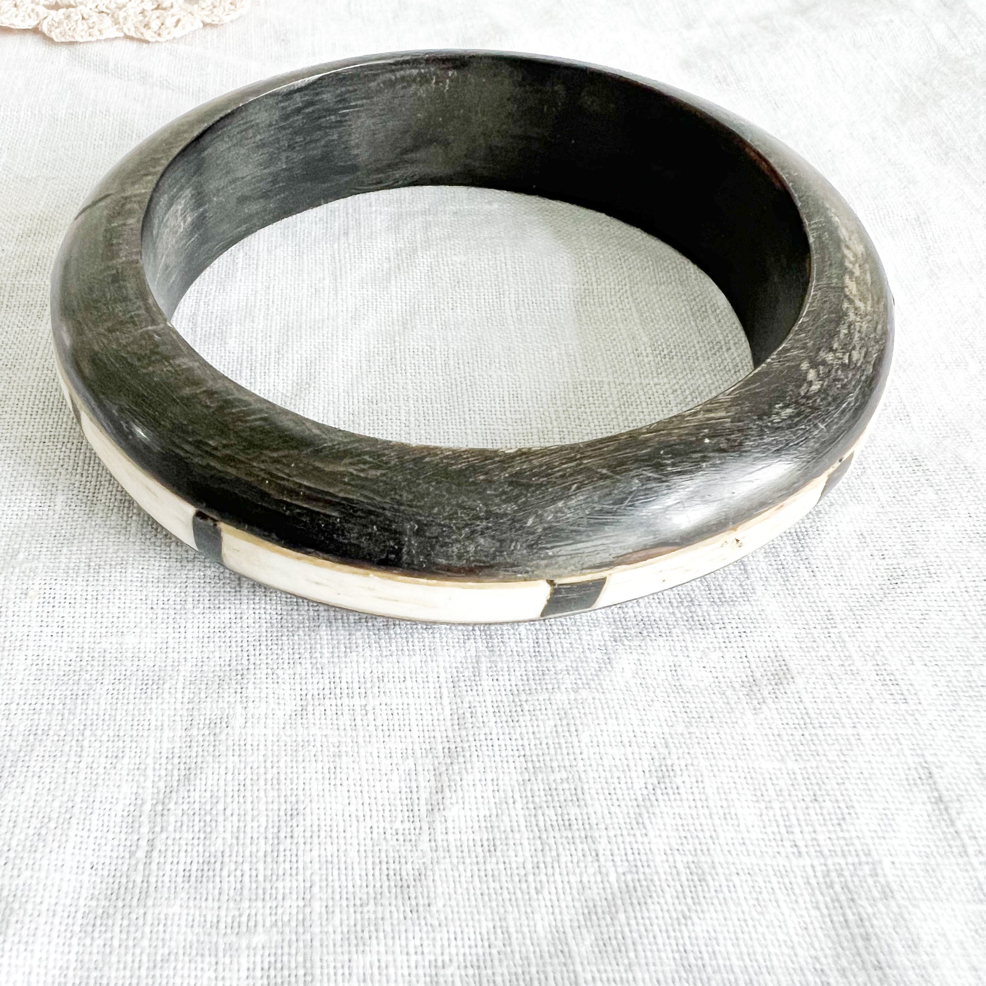 Indulge in the timeless beauty of our St. Cloud Vintage Rosewood Bone Inlay Bracelet. With an elegant 1960's design and delicate bone inlay details, this bracelet exudes sophistication and charm. Crafted from high-quality rosewood, it's a must-have for any vintage lover. Elevate your style with this stunning accessory.