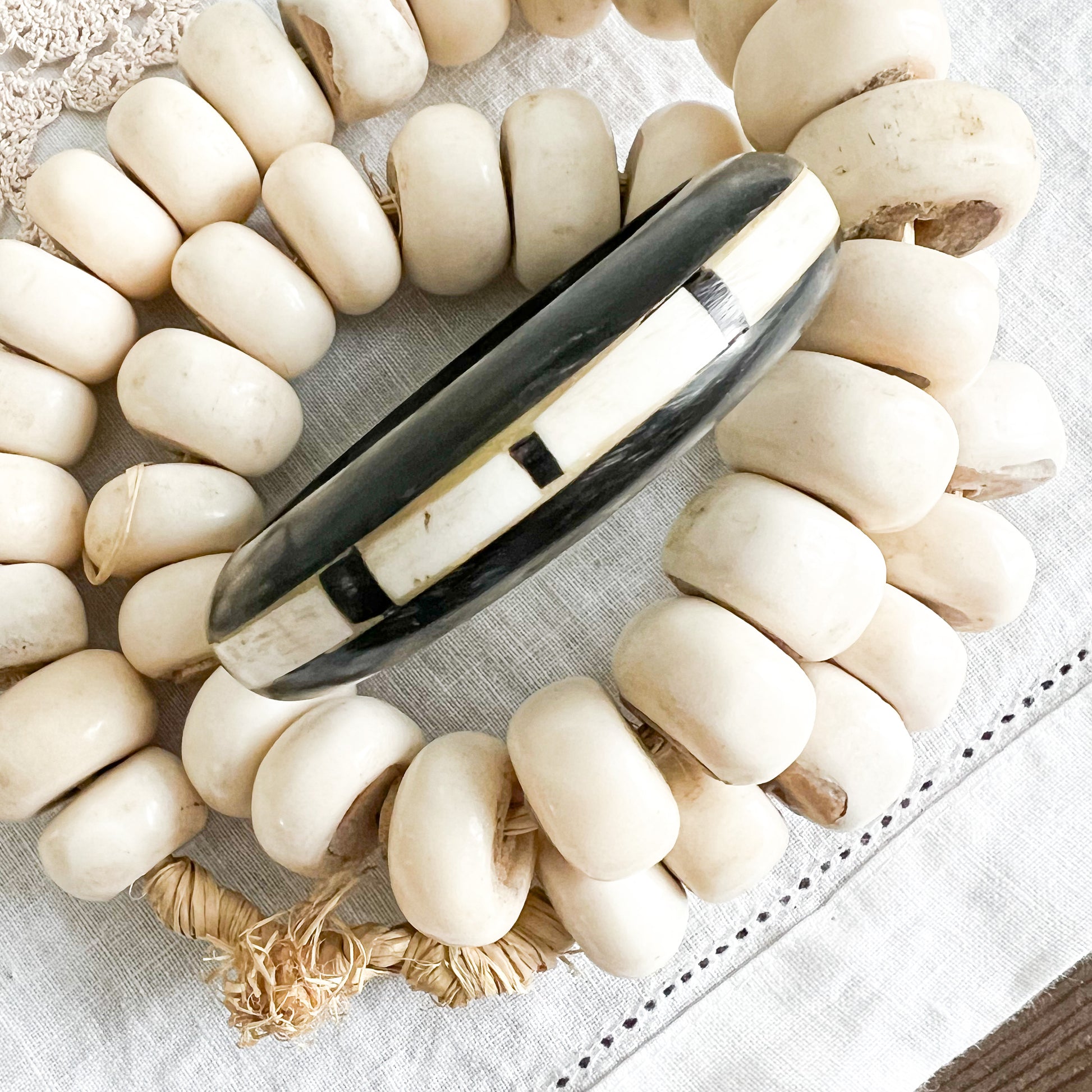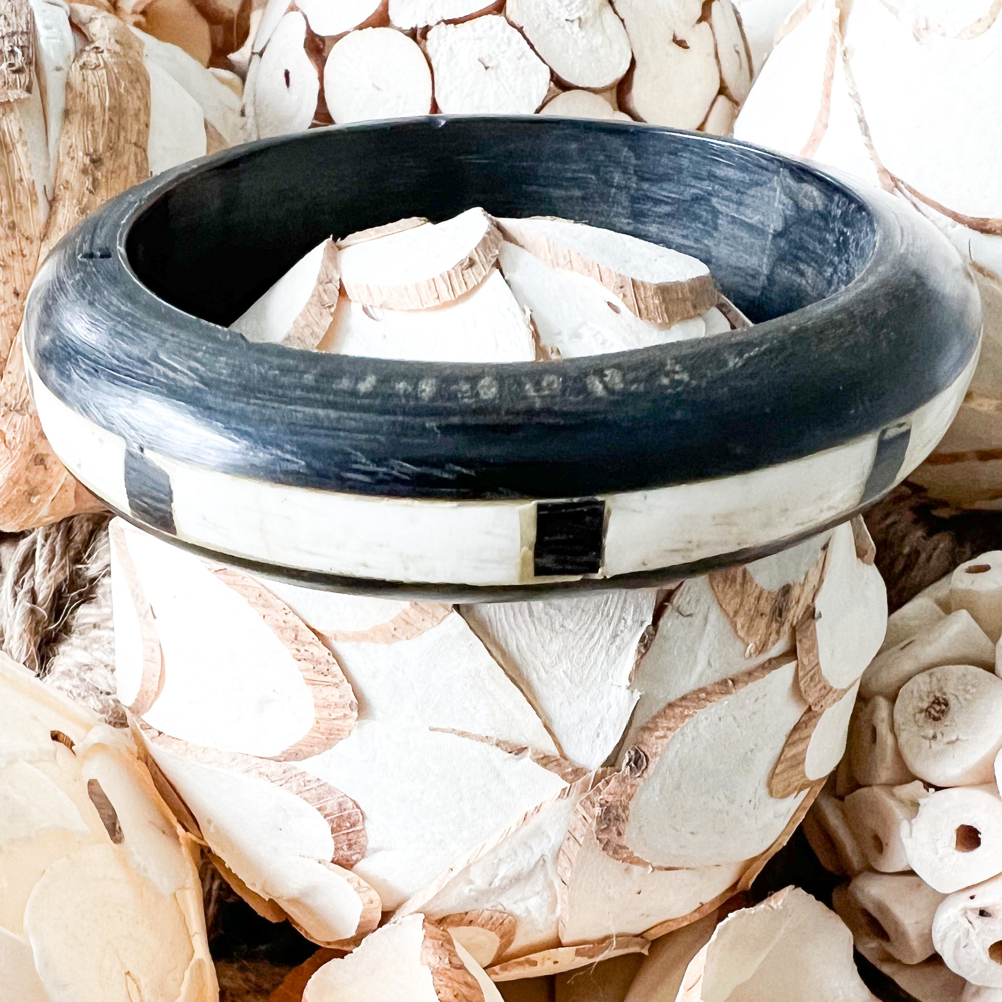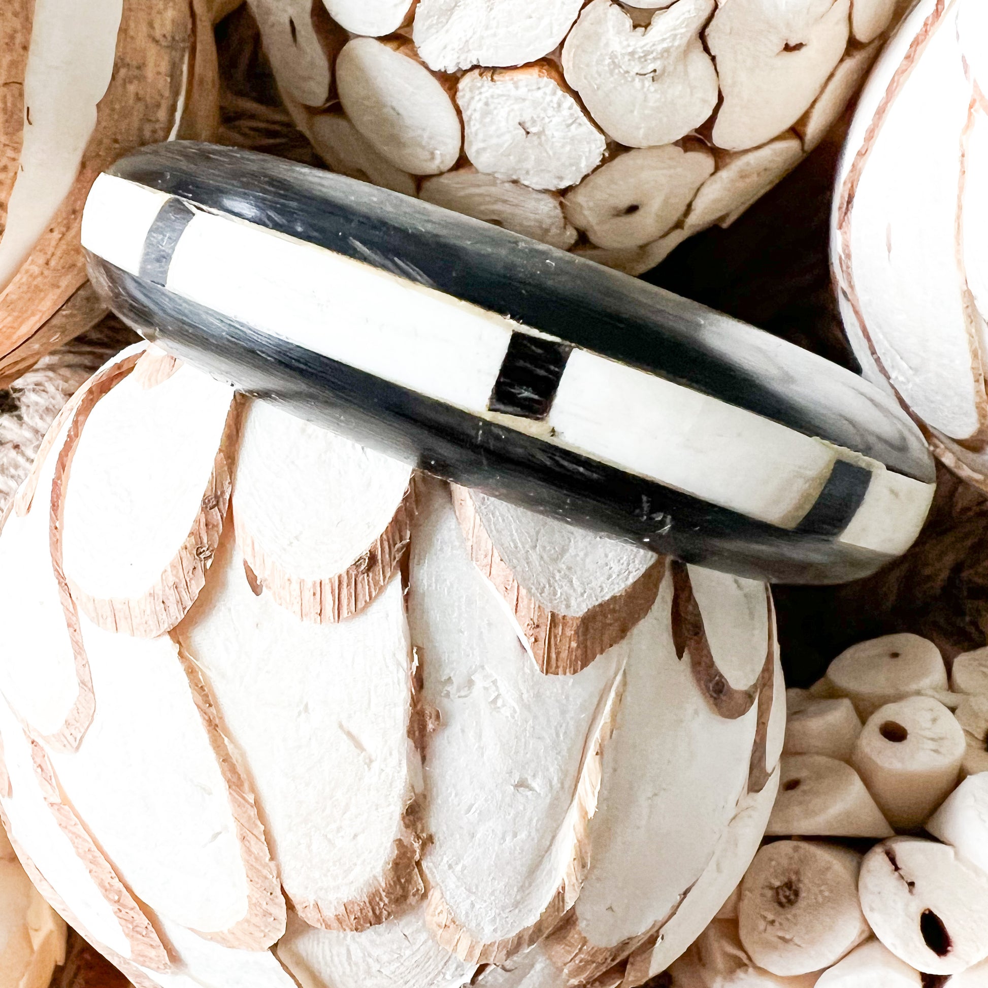 Indulge in the timeless beauty of our St. Cloud Vintage Rosewood Bone Inlay Bracelet. With an elegant 1960's design and delicate bone inlay details, this bracelet exudes sophistication and charm. Crafted from high-quality rosewood, it's a must-have for any vintage lover. Elevate your style with this stunning accessory.